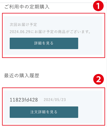 ❶定期商品をご利用中の場合は、詳細を確認いただけます。