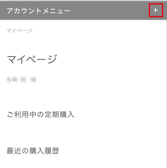 ⚫️マイアカウントメニューの「+」マークをクリック(タップ)する。