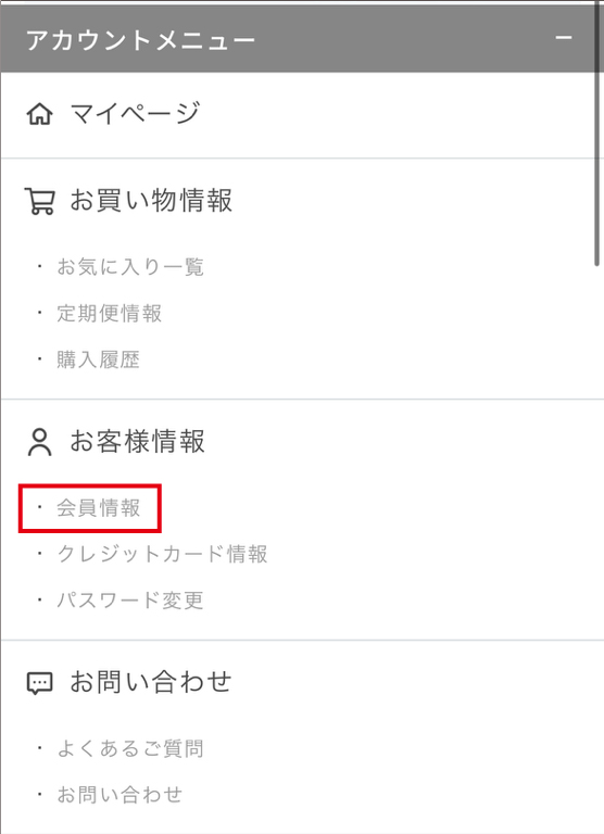 ⚫️お客様情報>会員情報を選択